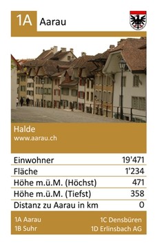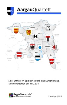 AargauQuartett besteht aus 44 Spielkarten. Von jedem der 11 Bezirken sind vier Gemeinden ausgewählt. Jeder Bezirk hat eine Farbe und eine Nummer. Pro Bezirk/Farbe sind jeweils die vier Gemeindekarten vorhanden. Die