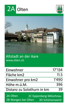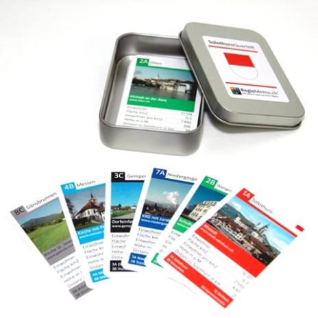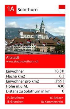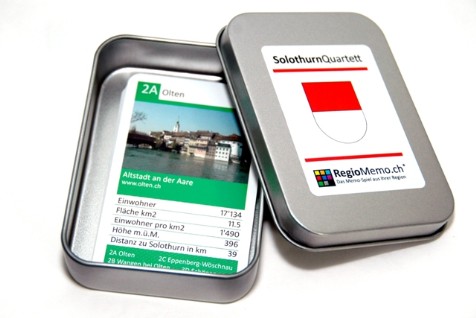 Das RegioQuartett vom Kanton Solothurn besteht aus 36 Spielkarten. Von jedem Bezirk sind vier Gemeinden ausgewählt. Jeder Bezirk hat eine Farbe und eine Nummer. Pro Bezirk/Farbe sind jeweils die vier Gemeindekarten vorhanden.