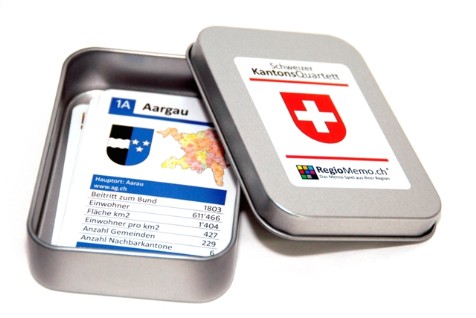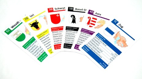Das Schweizer Kantone Quartett besteht aus 28 Spielkarten. Pro Kanton eine Karte. Zudem ist die Schweiz als Land und eine Joker-Karte enthalten (Damit das Spiel aufgeht).